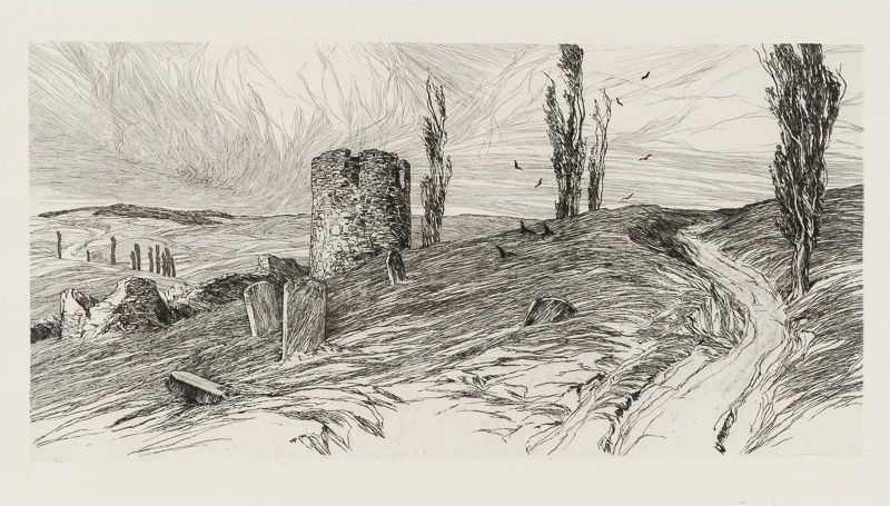 Radierung auf imitiertem Japanpapier. [Wien], [Druck der Gesellschaft für vervielfältigende Kunst], [1902]. Beautifully Framed. Size of frame with the Etching / Radierung: 52 cm x 75 cm. Actual Size / Groesse der Radierung: 29 x 53.5 cm. Excellent condition !