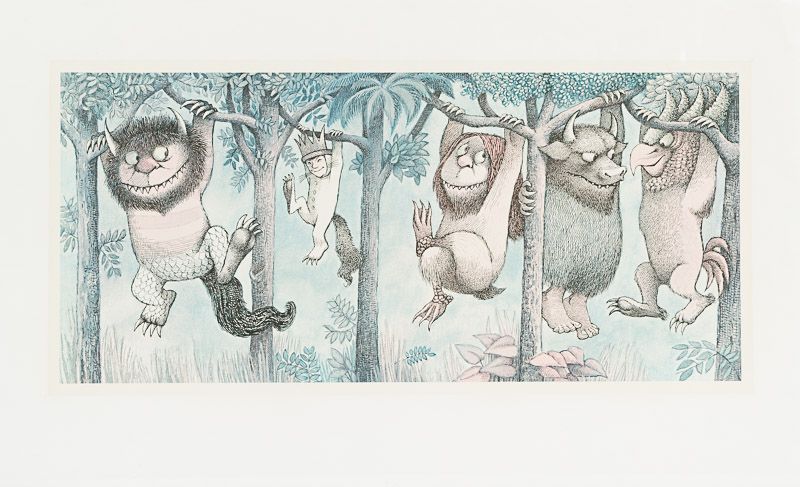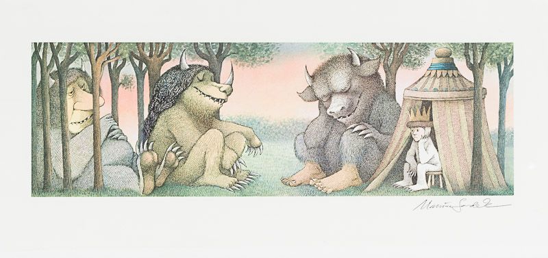 Collection / Archive of three (3) very large gicleé prints of original drawings from the book “Where the Wild Things are” by Maurice Sendak of which one is beautifully signed by Maurice Sendak. The collection includes: ‘Off to Bed without their Supper’ (signed) / ‘Let the Wild Rumpus Start’ (I and II).