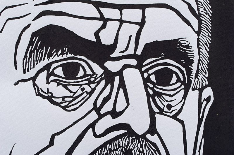 Original Linocut – Portrait of Thomas Mann. [County Mayo], Paula Pohli, no year [c.2015]. 39 cm x 51 cm. Excellent condition. Signed and limited edition (No.6 of only 25). Stunning portrait of Thomas Mann in an unusual Linocut by irish artist Paula Pohli.