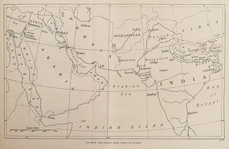 Fourth Edition. London, John Lane The Bodley Head, no year (c.1933). 16 cm x 23.5 cm. Photographic portrait frontispiece, XIX, 279 pages. 52 plates. One fold-out maps showing ‘the flight from Cairo to Purnea. Numerous diagrams and photographic plates with captioned tissued guards. A pair of 3D Glasses in rear pastedown pocket for viewing the Anaglyph on p.222. Hardcover [publisher’s original blue cloth] with gilt lettering on spine. Blind embossment on front board. Stained top edge. Very good- condition with only minor signs of external wear. Spine faded and slight rubbing and abrasion to heel. Small section cut out of front endpaper. Interior tanned but clean and unmarked.