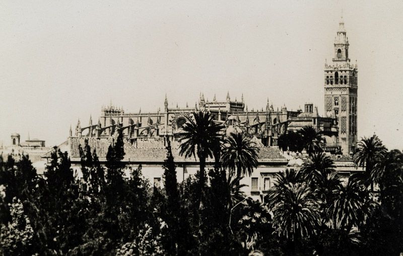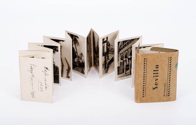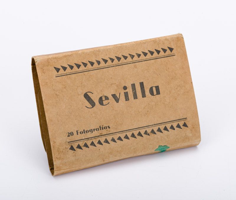 Sevilla, L. Roisin [Fotografo], [1937] 10 cm x 7.5 cm. 20 photographic cards, connected as Leporello. Original Softcover. Excellent condition with some minor signs of wear only. Signed by the member of Na-Fianna Eireann from Graignamanagh, Captain Padraig Quinn, in 1937.