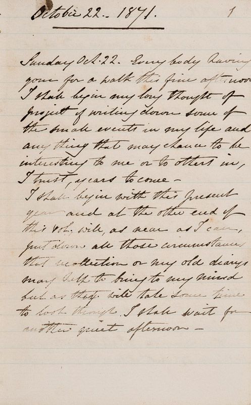 Manuscript Autobiography, Diary and vintage photo album of the Chapman – Barwise Family. A cultured London woman’s autobiography and diary including a first hand account of ‘Fiesche’s attempt to assassinate Louis Phillippe’ which she observed while at school in Paris as a child. The manuscript has a mournful postscript by the man she left behind, her husband: ‘Alas! that I George Chapman should have to finish the record of so dear a Life…’ by Lucy Weston Barwise (1822-1876) wrote in a lockable, lined octavo notebook, crushed morocco, marbled endpapers and edges. Her autobiography was begun in January 1872 at one end of the book (16 pages); her diary appears at the other end of the book from October 22 1871-April 1874 with her husband’s postscript dating from June 1880. There is a second volume of family accounts in a lockable octavo sized ledger and a folio sized volume of family photographs, most unlabelled. Barwise’s autobiography recounts her education in Paris in the Rue Taitbout where she witnessed ‘Fiesche’s attempt to assassinate Louis Phillippe’ while watching from her music master’s house opposite the Porte St Martin, noting ‘the Duc D’Orleans [who] looked very handsome’ but shortly afterwards ‘heard a loud report and then a shout… general commotion but the crowd was so thick and immoveable’ and then ‘the King and stiff rode slowly back along the line but looking very white.’ It was only later that she discovered the casualties of ‘Fieschi’s infernal machine… It was a row of gun barrels arranged along a window so as to be discharged all at once.’ Barwise also watched the subsequent funeral from her attic window, the ‘open hearse with its draperies of black and silver’. The highlight of Chapman’s diary is a detailed account of the deaths she witnessed during the ‘Thanksgiving Day for the recovery of the Prince of Wales’ on February 27th, 1872, as seen from her husband George Chapman’s ‘office windows in Cockspur St’ behind Trafalgar Square which overlooked the procession. There she witnessed the lack of barriers and observes with horror the police charging into the surging crowd ‘The big policemen threw themselves against the men; the horses even made to dance and back heel it was a fearful struggle’with a baby almost crushed to death in front of her. There is an interesting secondhand account of Paris under the Commune via one of her daughters and frequent visits to London art exhibitions as on July 8 1871 where she saw an ‘exhibition of old masters at the Royal Academy… Crome, Ruysdael, heads by Moroni, of Titian’s Schoolmaster, Burgomaster by Rembrandt… the two heads.. by Giorgine belonging to Lord Ashburton, such colour and such expression. There are trips to Ascot and the Boat Race, a curry with friends in Wandsworth and a recitation by ‘Mr Bradman [of] the Merchant of Venice for the benefit of the Workman’s Club. It was very clever… Shylock was good but my recollection of actors, Charles Kemble, C.Kean &c made this more familiar and perhaps a little more like ranting’.