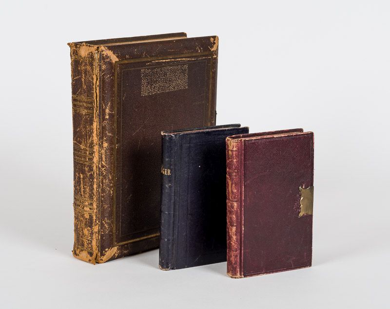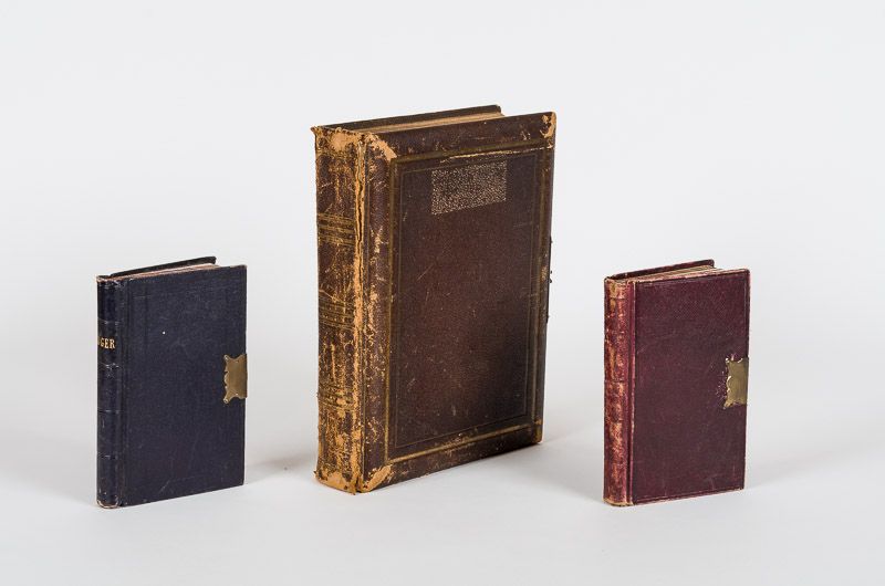 [London], c. 1871 – 1872. Octavo. Diary I: 44 pages / Diary II: 24 pages / Photoalbum: 48 pages with 120 original cabinet photographs (including a photograph of a british Forest School). Hardcover / Original full leather. All three Volumes slightly rubbed but all in very good condition. The cabinet photographs all in excellent condition and from dozens of different victorian photographers in Bath (Friese Greene), Bonn (Emil Koch), Astley (Photograpic Landscape Artist in Astley, Essex), and many others. The one diary is really a cash ledger of George Chapman where he kept track for the Chapman family with listings of expenses for Hampstead House, Henry Chapman, Edward Chapman, Oswald D. Chapman, Mrs. Barrett Chapman, Edith Louisa Chapman.